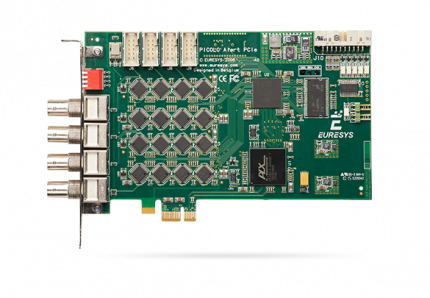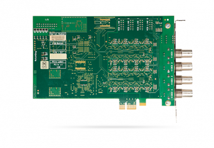 PCIe video capture card with four BNC connectors for up to 16 standard PAL/NTSC cameras